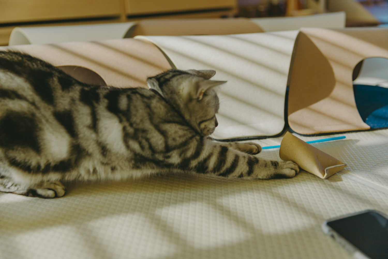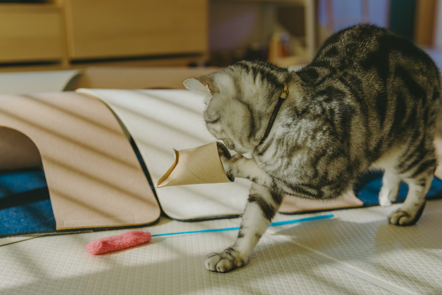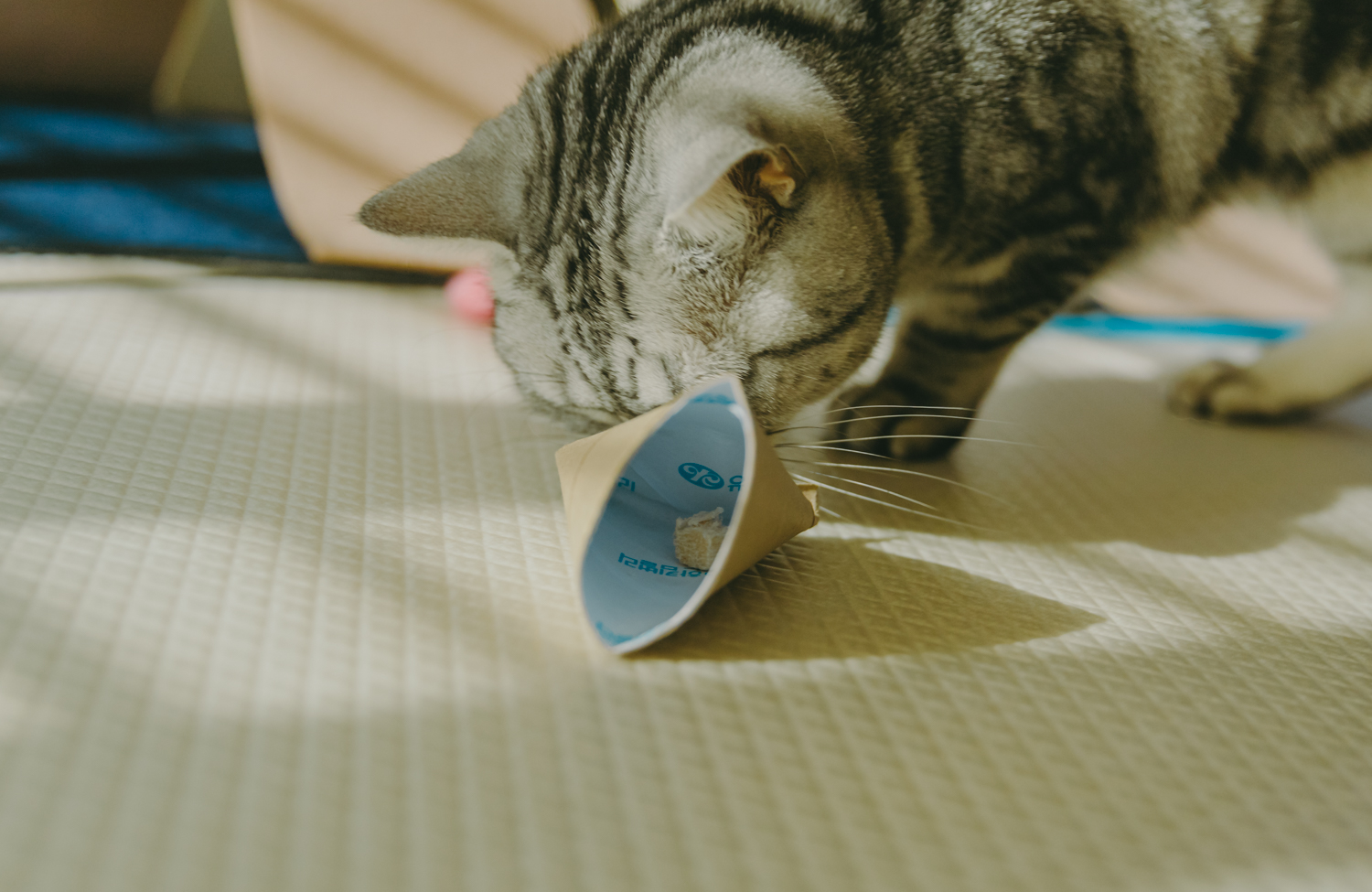 다른 집사님들도 휴지심으로 먹이 퍼즐 장난감 만들어서 몇 분 만에 성공하는지 한번 시도해보세요