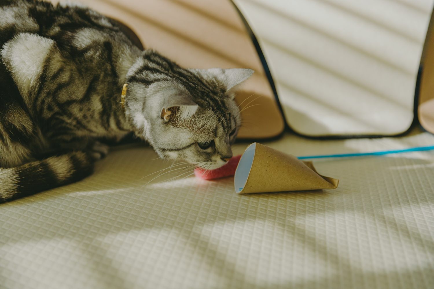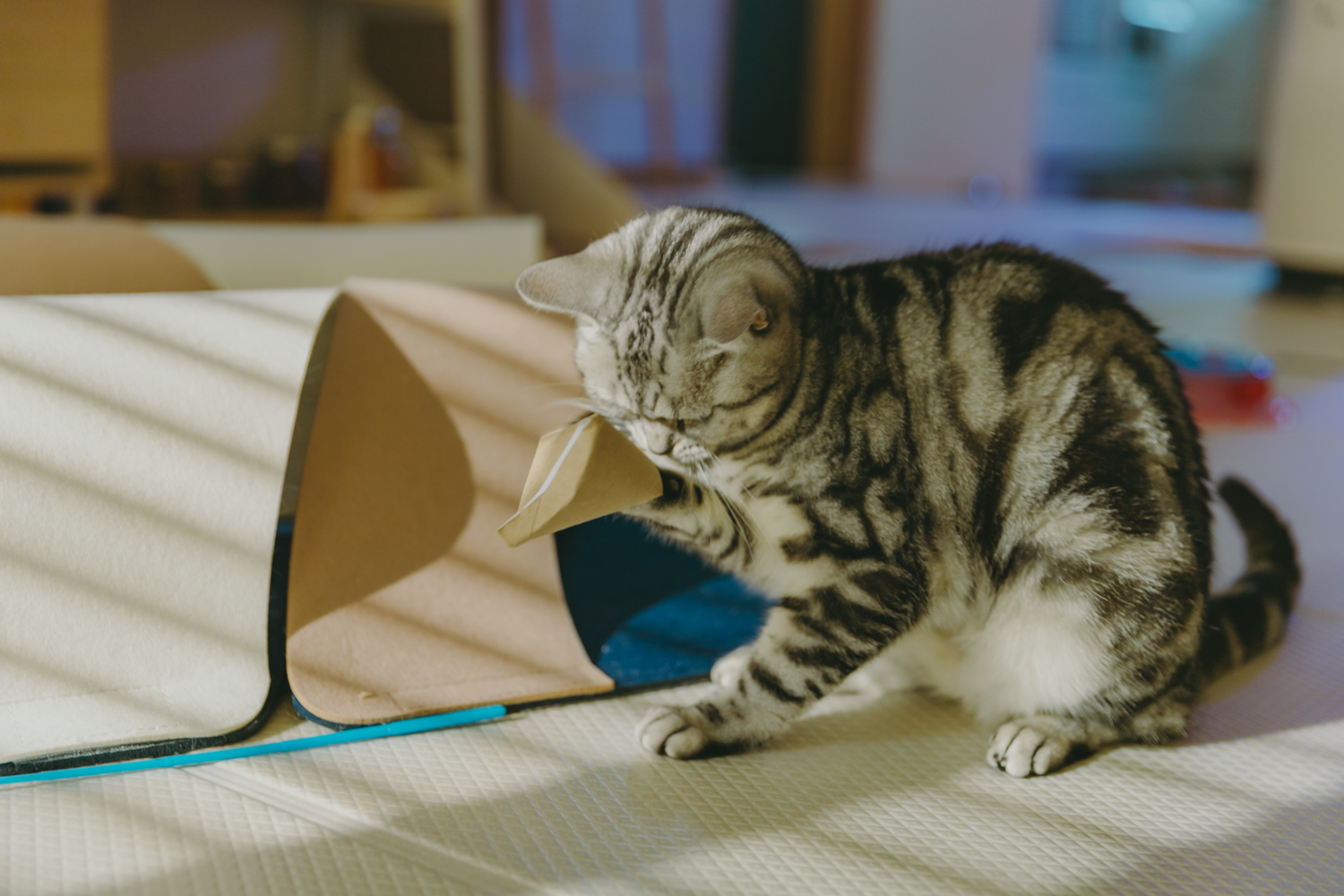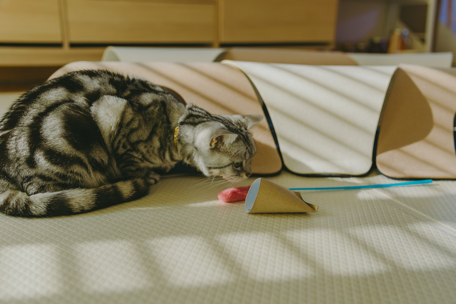 다른 집사님들도 휴지심으로 먹이 퍼즐 장난감 만들어서 몇 분 만에 성공하는지 한번 시도해보세요