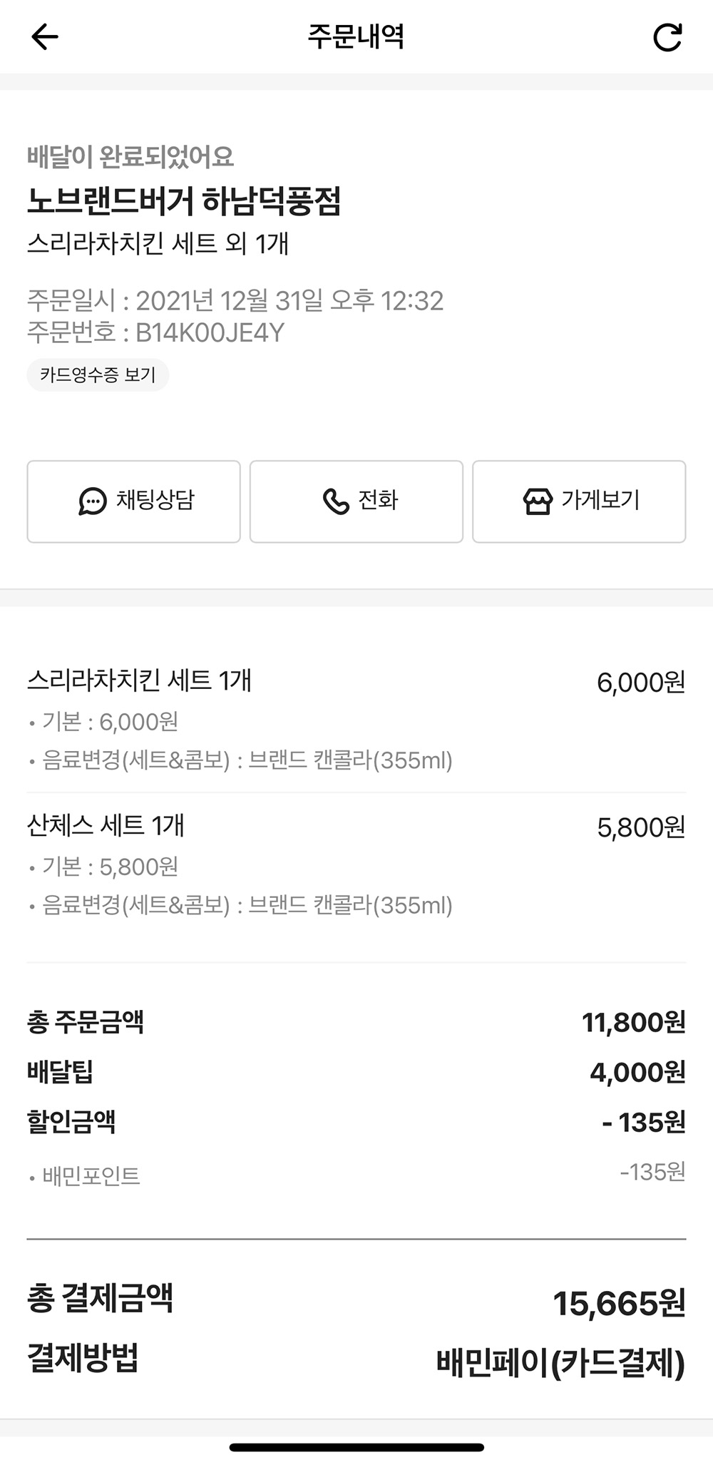 배달 팁만 4천 원은 아쉬운 부분. 걸어서 10분 거리인데 왕복 20분을 감안할걸 그랬나 싶기도 하다가 날이 추우니 귀차니즘에 그만 결제 진행을 해버렸다.