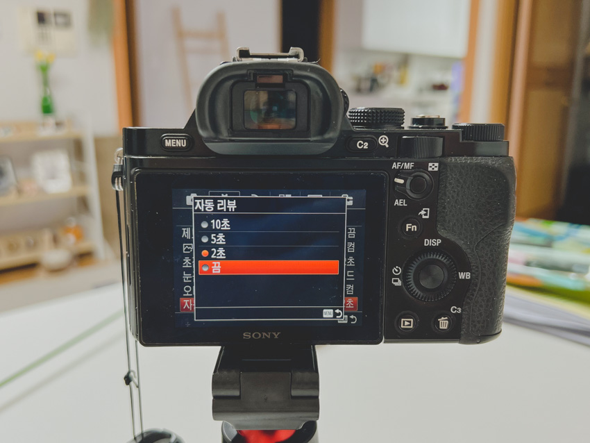 촬영을 하면 결과물을 LCD창에 잠깐 보여줬던 기능도 끔으로 설정을 하였습니다.