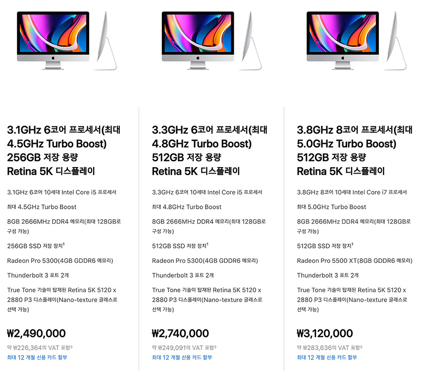 3.8 Ghz 8 코어 512GB 용량의 5K 모델이었고요 지금 홈페이지에서 확인해보니 기본 312만 원부터 시작하네요.