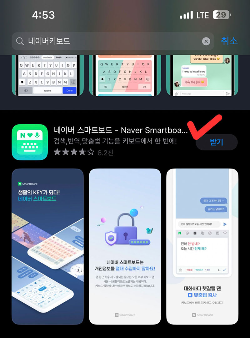 우선 앱 스토어에 들어가 '네이버키보드'라고 검색을 해줍시다