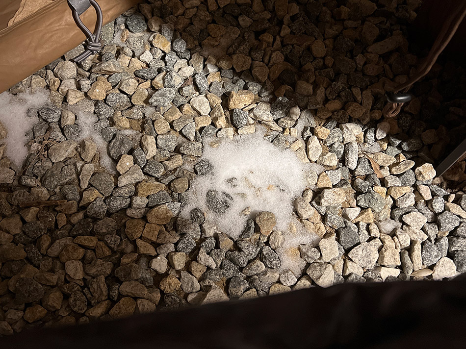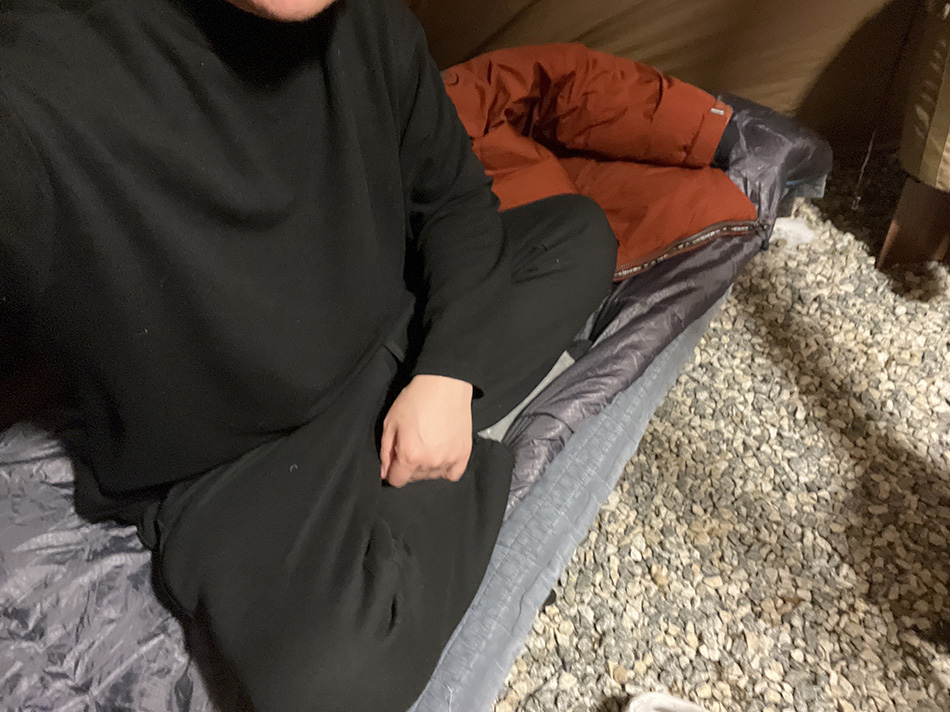 찬 공기가 아래에 깔리고 따뜻한 공기는 위를 향하는 특성상 충분히 따뜻해진 텐트 내부라 할지라도 바닥의 눈조차 녹지 않을 정도로 밑바닥은 춥습니다.