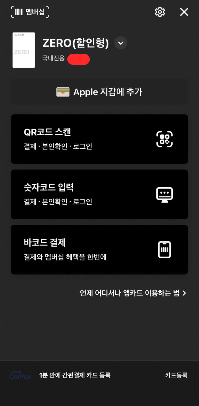 제가 사용중인 현대카드는 자동차 하이패스용으로 만들어 둔 카드였는데 다행히 추가로 카드를 만들지 않고도 잘 등록이 되었습니다.