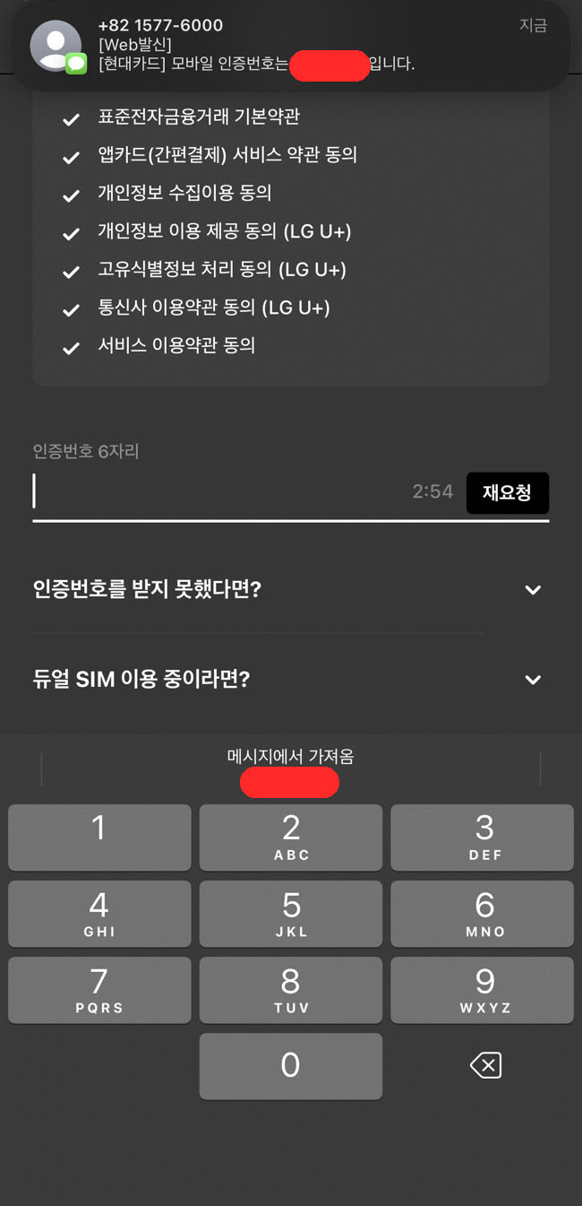 - 현대카드 앱다운 후 앱에 현대카드 등록하기.
