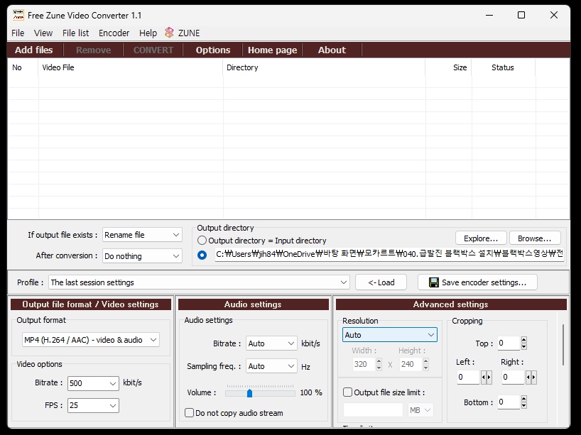 프리웨어 프로그램 이름은 "Free Zune Video Converter"