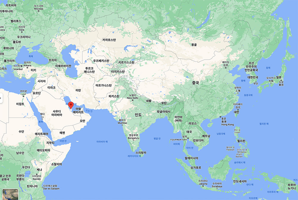 우리나라에서 보면 중국과 인도, 아프가니스탄과 이란을 지나야만 도착할 수 있는 나라네요.