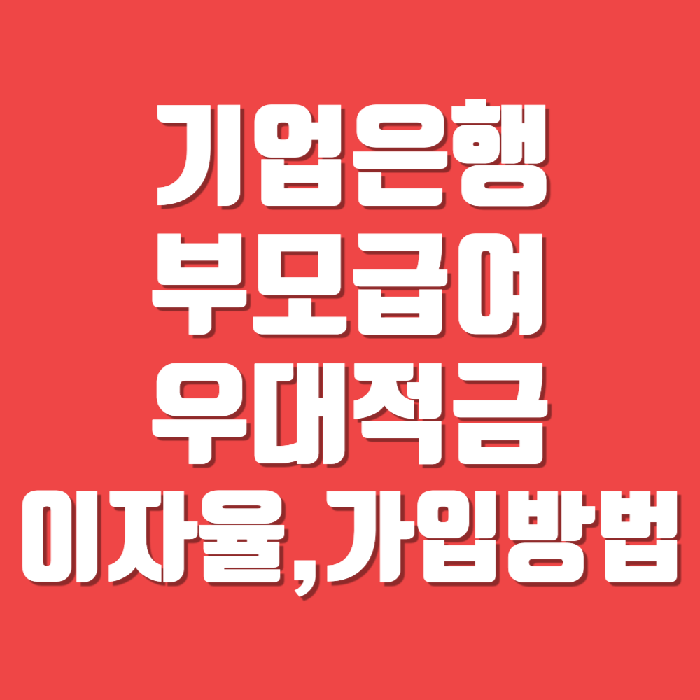 안녕하세요 오늘은 기업은행에서 실시하고 있는 부모급여 우대적금에 대해서 알아보도록 하겠습니다. 누구나 적금에 가입할 수 있는게 아니기 때문에 가입대상은 어떻게 되는지, 이자율과 가입방법까지 알아보도록 하겠습니다.