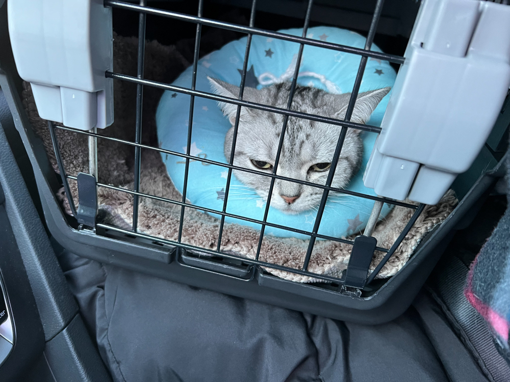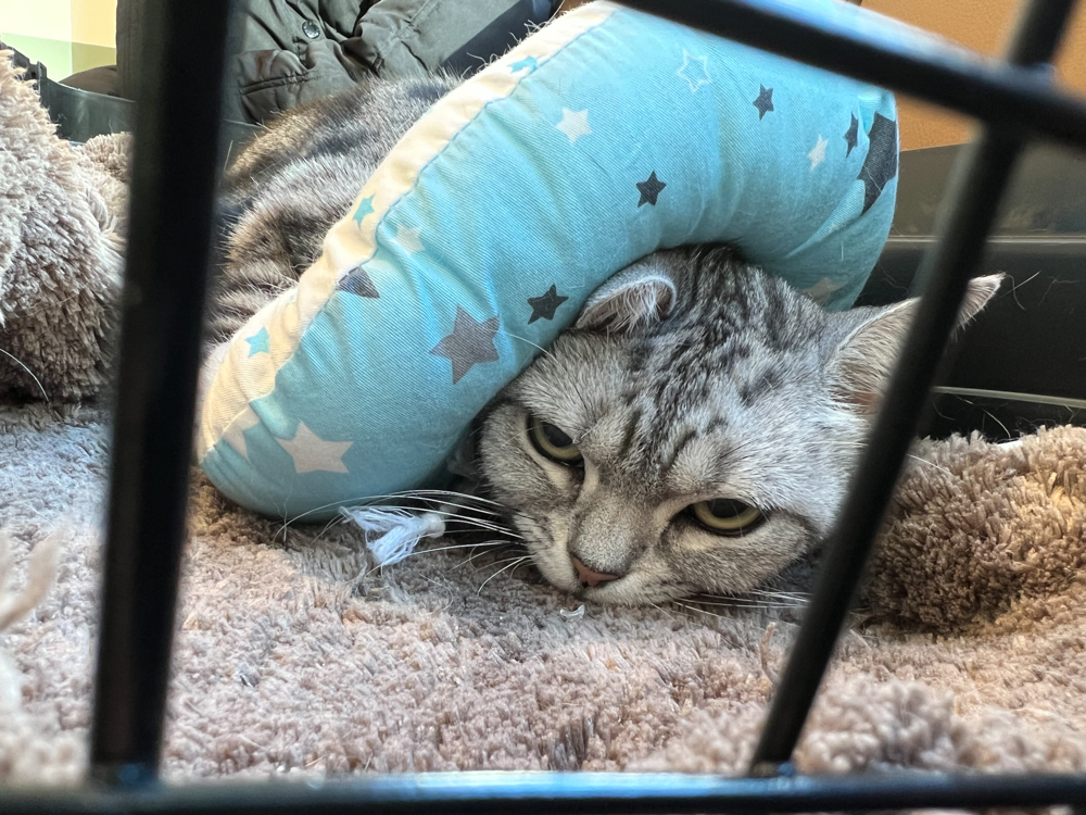 스크레쳐 옆면에 뒷발을 베여 꿰매었던 실을 오늘 드디어 풀고 왔어요