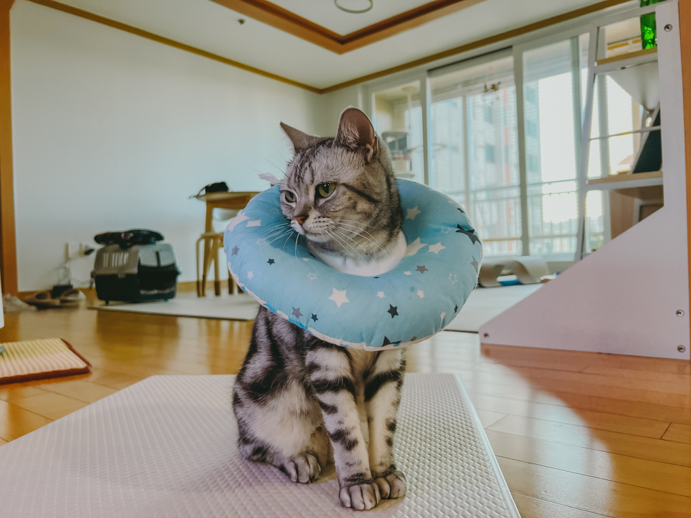 이제 넥 카라 풀고 캣 터널도 실컷 이용하길...